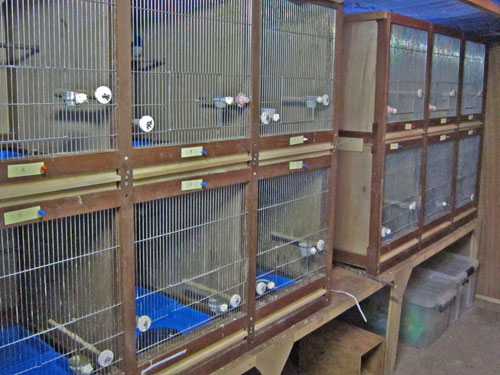 状態が良く、一緒に飼養できる鳥は同じフライングケージに収容しますが重症の鳥や縄張り性が強い鳥は小型ケージに個別に収容します。