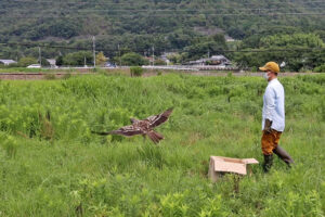 7月16日に衝突事故で小山田事務所に保護したホトトギス。収容当初は起立不能でしたが、その後順調に回復し7月28日には大型のフライングケージ内を自由に飛び回るようになりました。8月5日事務所近くの里山環境で放鳥しました。元 […]