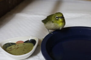2025年9月8日違法飼養(密猟)の摘発があり3羽のメジロが警察により保護されました。事務所に移送されてきたときには2羽がすでに落鳥していて、残り1羽も目を半ば閉じ危ない状況でした。補水して落ち着いてから緩めに溶いたすり […]